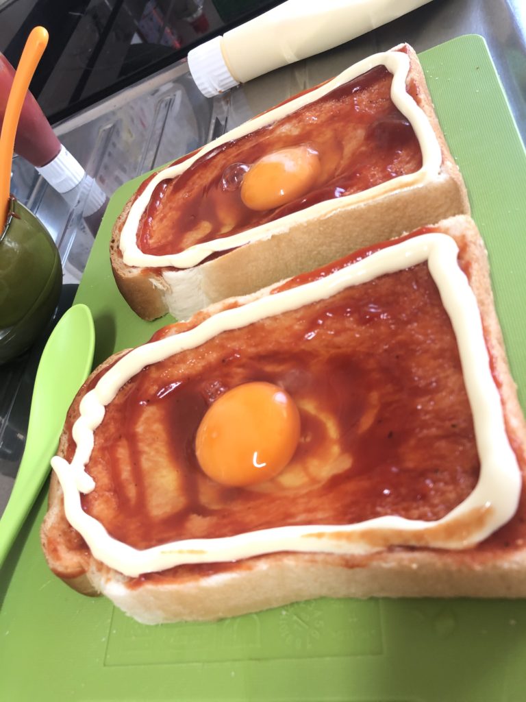 また、食パン、卵、食パンの窪みの大きさでこのマヨネーズの量を調整して下さい。